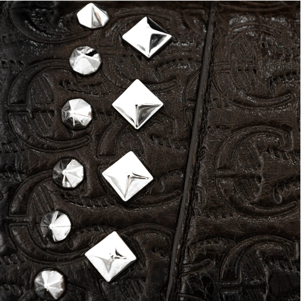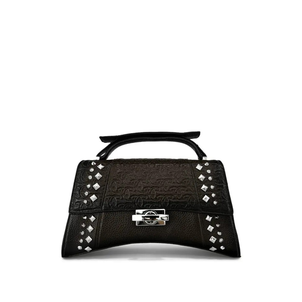 Bolsa para mujer en piel de bovino. Al frente presenta aplicación metálica de logotipo Cuadra.