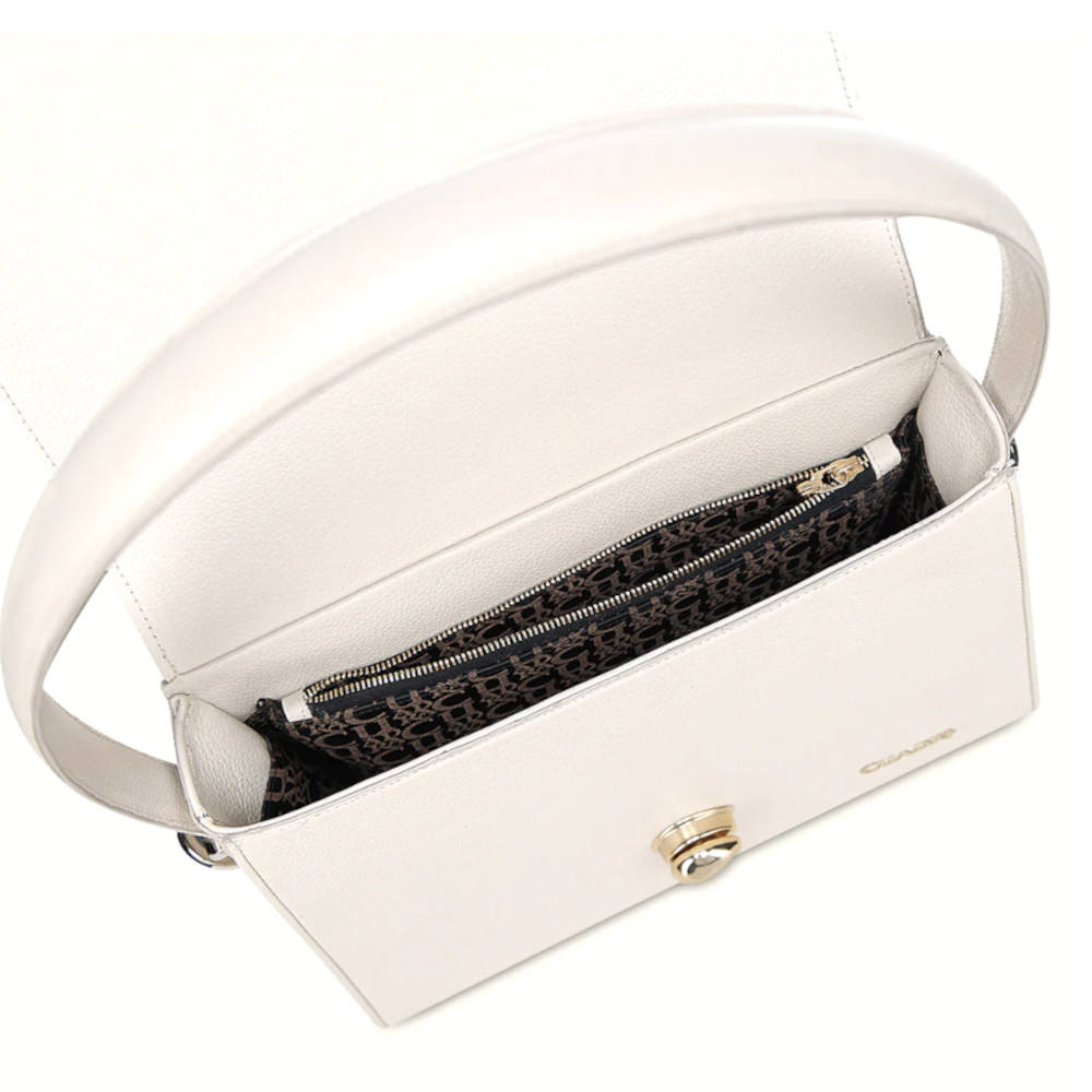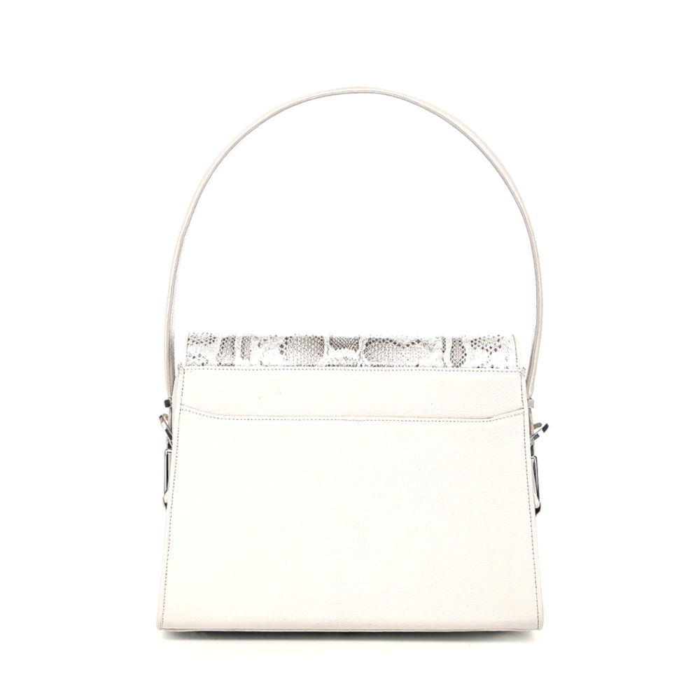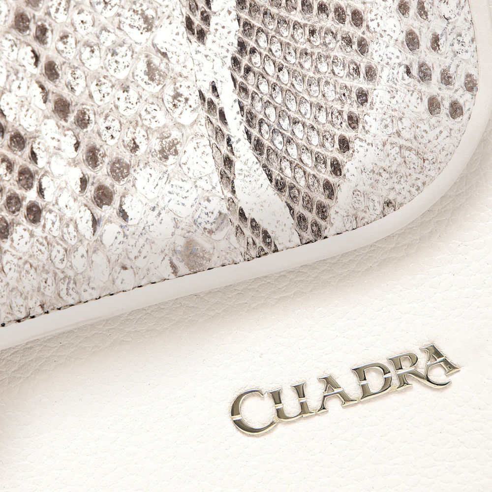 Bolsa de hombro en piel genuina de pitón y piel de bovino para dama. Presenta aplicación metálica del logotipo Cuadra. La parte interna presenta un compartimento y un bolsillo asegurado con cierre. Con asa corta. Asegurado con broche metálico.
