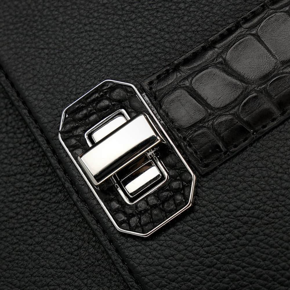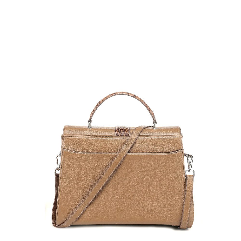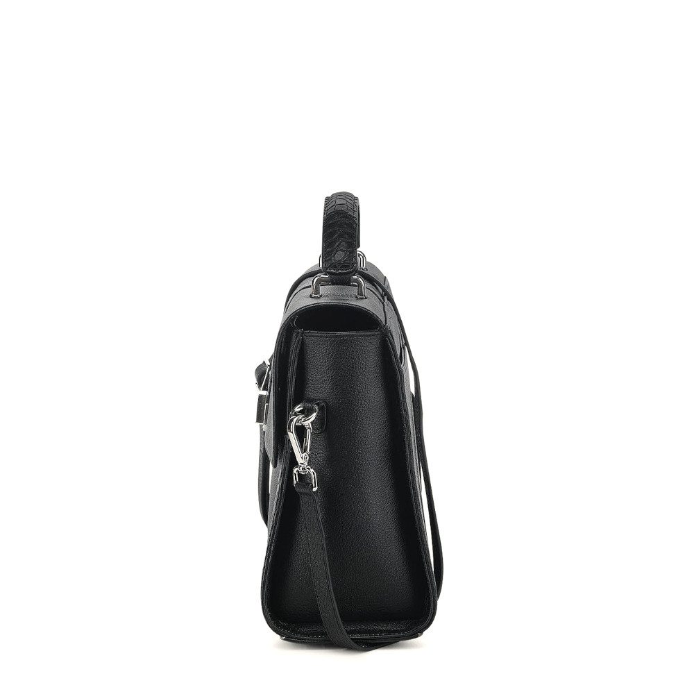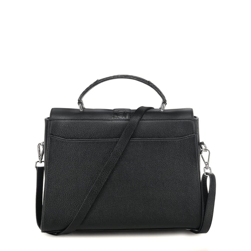 Bolsa satchel para dama en piel genuina de aligátor y piel de bovino. Presenta aplicaciones de piel de aligátor al frente, en los costados y en el asa corta. Con aplicación metálica del logotipo Cuadra. El interior cuenta con un bolsillo con cierre y la parte trasera con un bolsillo con imán. Asa larga ajustable y desmontable. Asegurado con broche giratorio.
