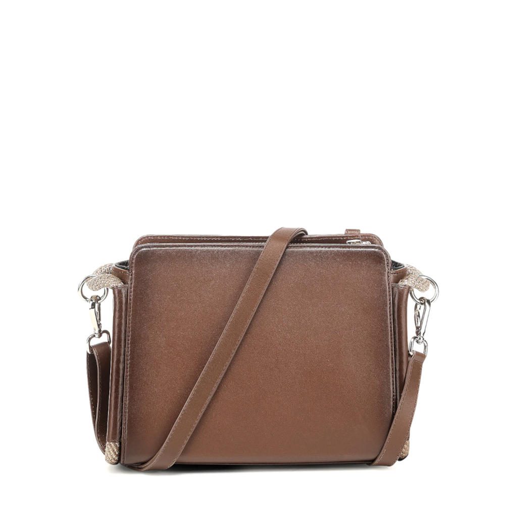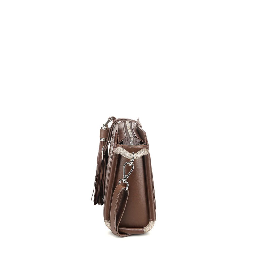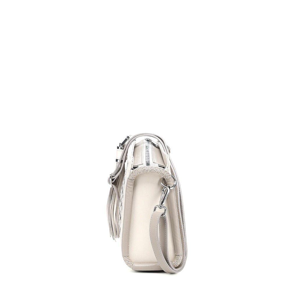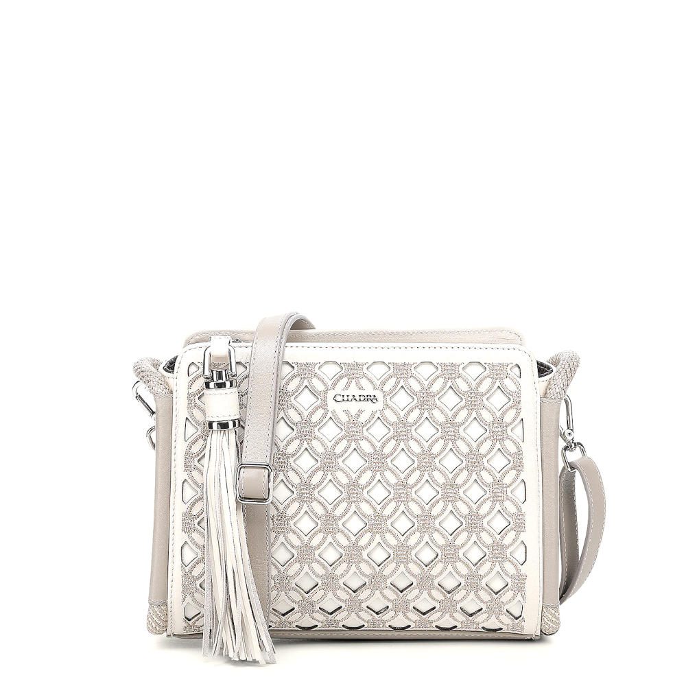 Bolsa Crossbody para dama en piel genuina de bovino. Presenta aplicación metálica del logotipo, bordado en alto relieve, perforaciones láser con motivos geométricos y una borla colgante en piel genuina. Con cuerdas decorativas a los costados. La parte interna cuenta con un bolsillo con cierre. Con asa larga, ajustable y desmontable. Asegurado con cierre.