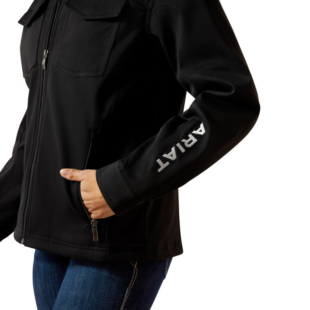 Resistente y versátil, esta chaqueta para usar a diario te acompañará durante mucho tiempo. Está confeccionada con un tejido softshell de doble capa, robusto y resistente, que repele la lluvia y te mantiene abrigado. Los bolsillos de parche en el pecho le dan un toque sutil de estilo vaquero.