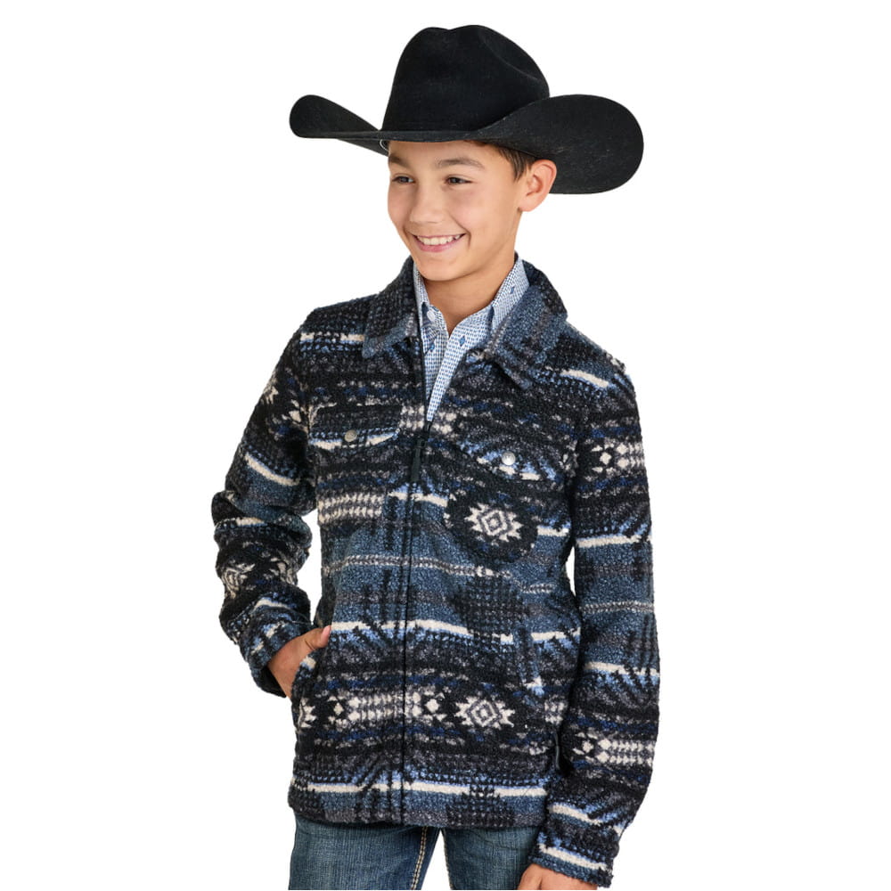 Manténgase abrigado y con estilo con la chamarra bereber azteca a rayas para niño. Esta chamarra luce un distintivo estampado azteca y cierre de cremallera. Las mangas largas y el tejido bereber de peluche ofrecen comodidad y una estética única, perfecta para los días más fríos.