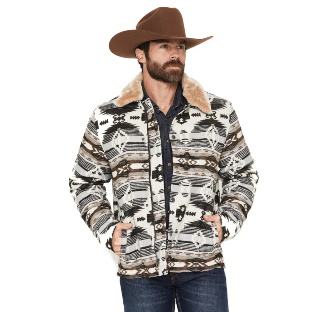 Manténgase elegante y abrigado con la chamarra Aztec Jacquard con cuello desmontable. Esta chamarra cuenta con un cuello de piel desmontable y cierre de cremallera y broches para mayor versatilidad. Las mangas largas y el tejido jacquard ofrecen comodidad y una estética única, perfecta para los días más fríos.