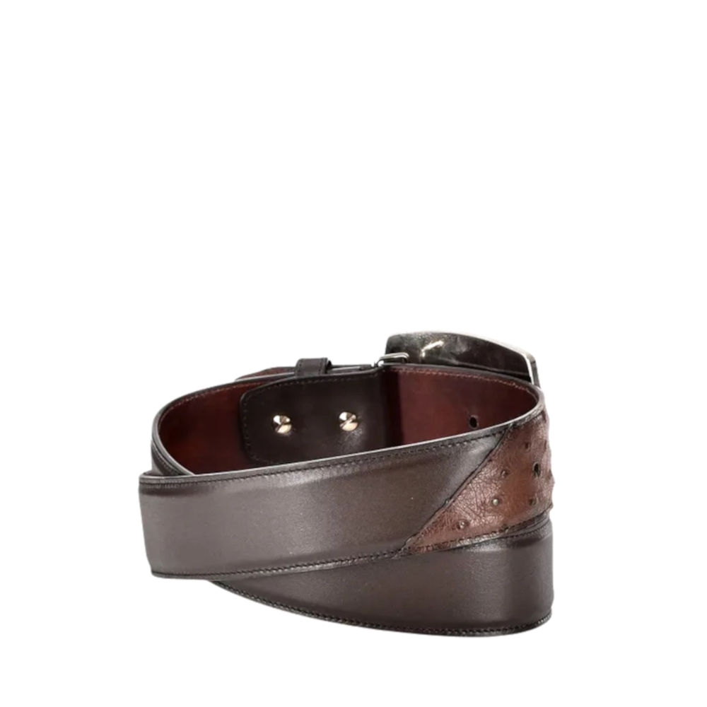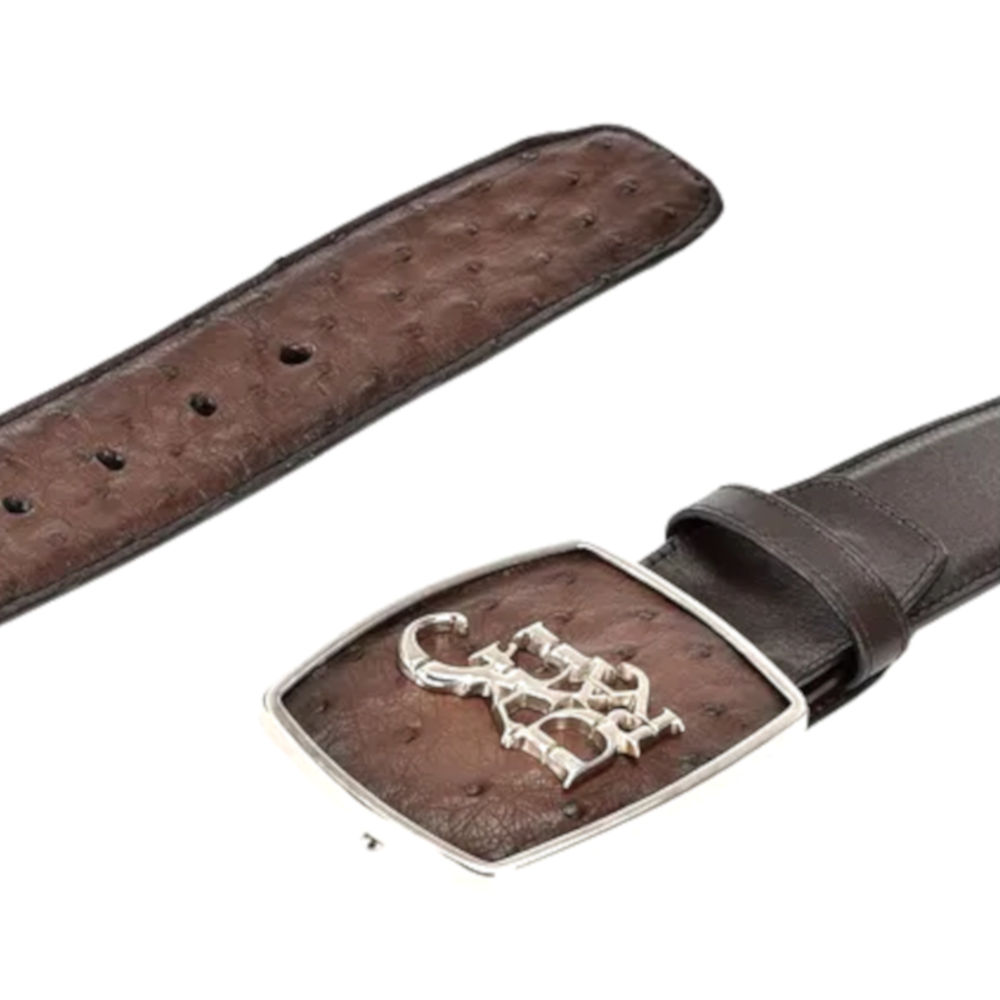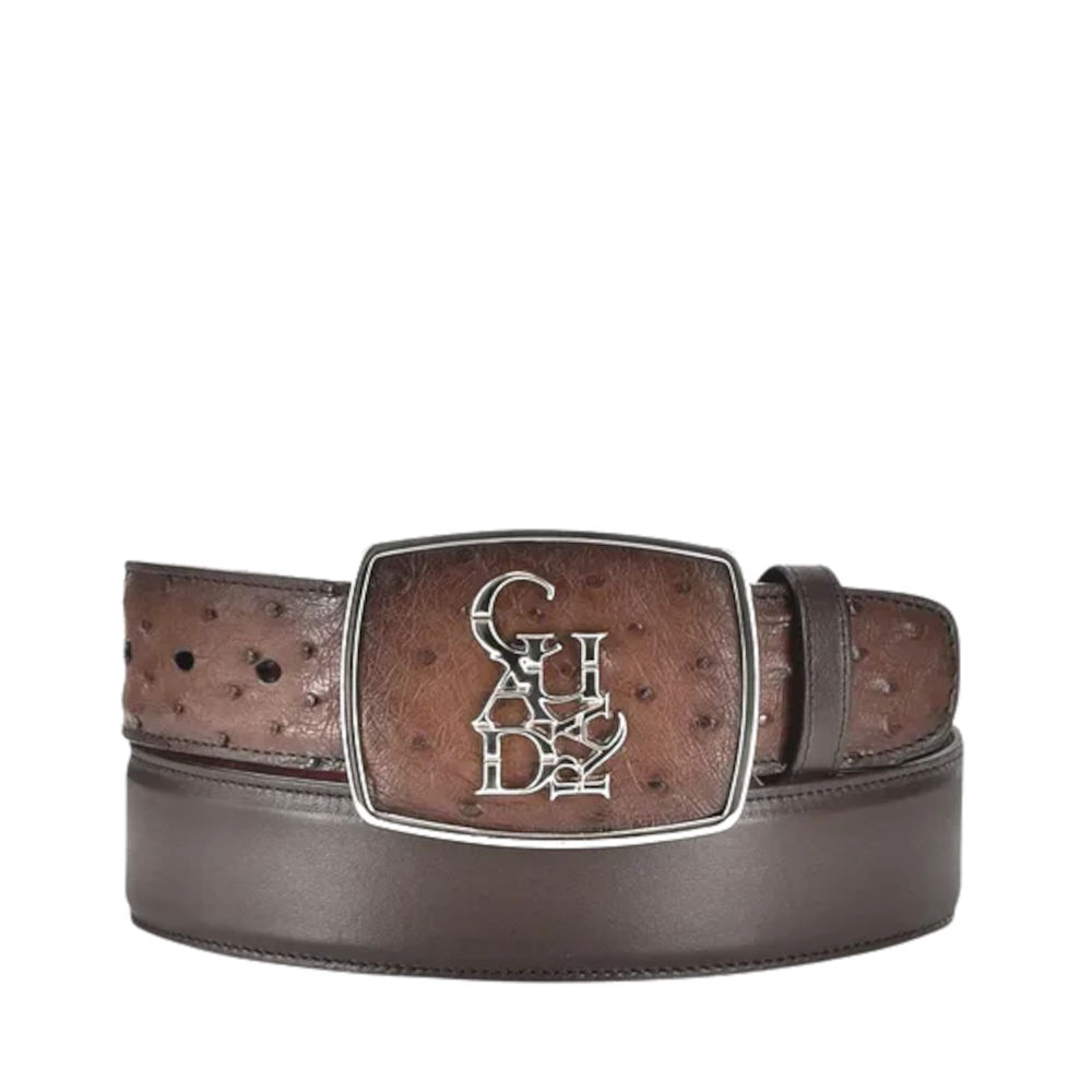 Cinto para hombre de auténtica piel de avestruz marrón. Logotipo de Cuadra en níquel. Estilo informal estilo western.