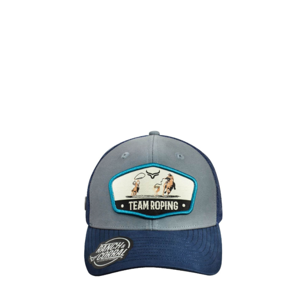Gorra Ranch & Corral Rodeo 27 en color gris y visera azul marino.