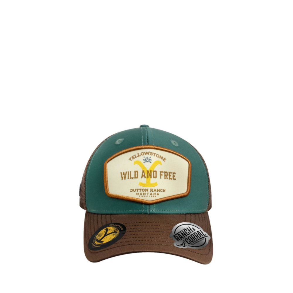 Gorra Ranch & Corral Yellowstone 24 en color verde y visera café.