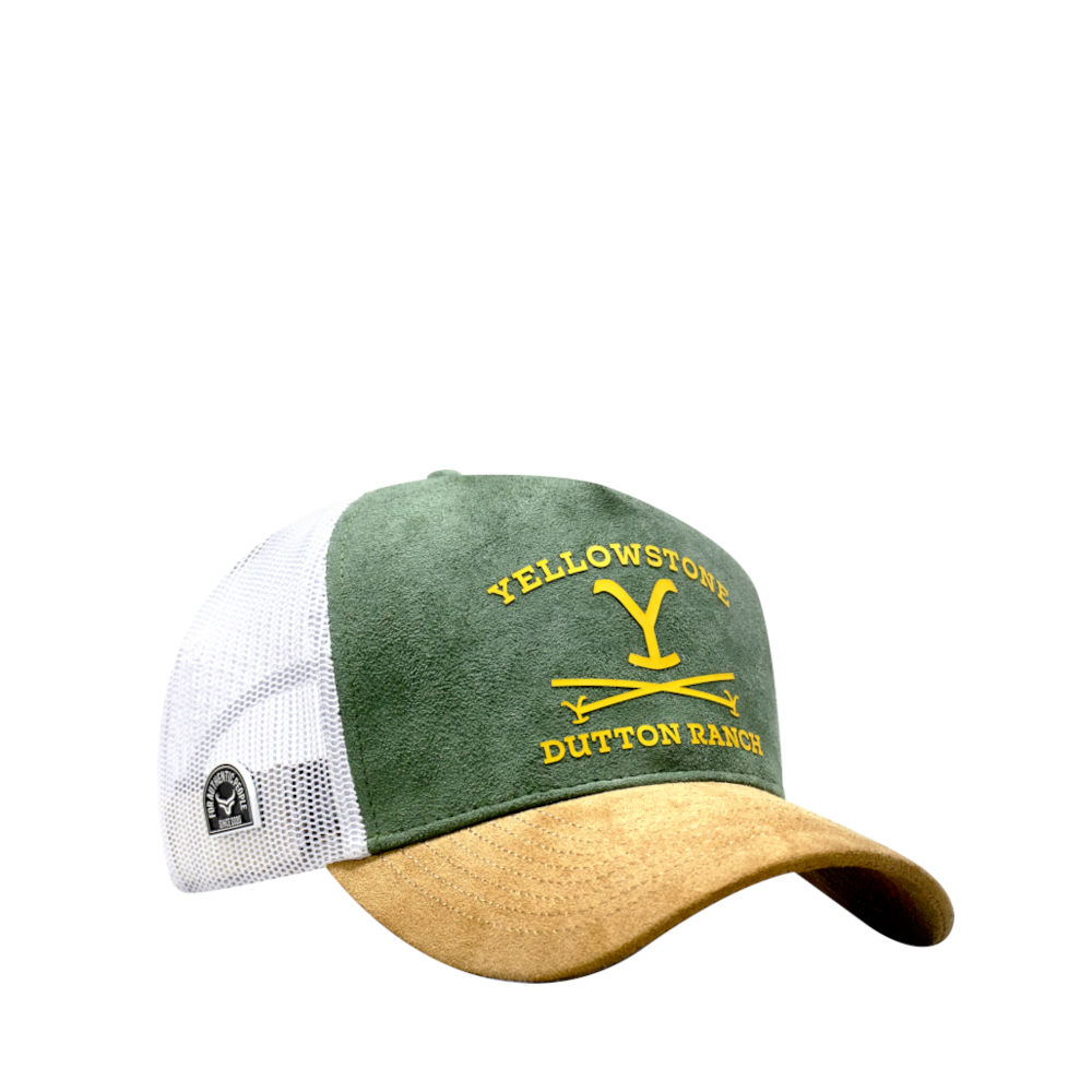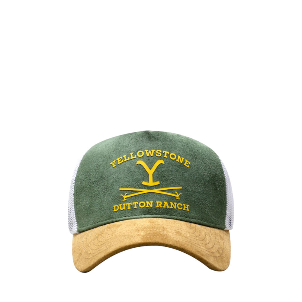 Gorra Ranch & Corral Yellowstone 34 en color verde y visera amarilla.