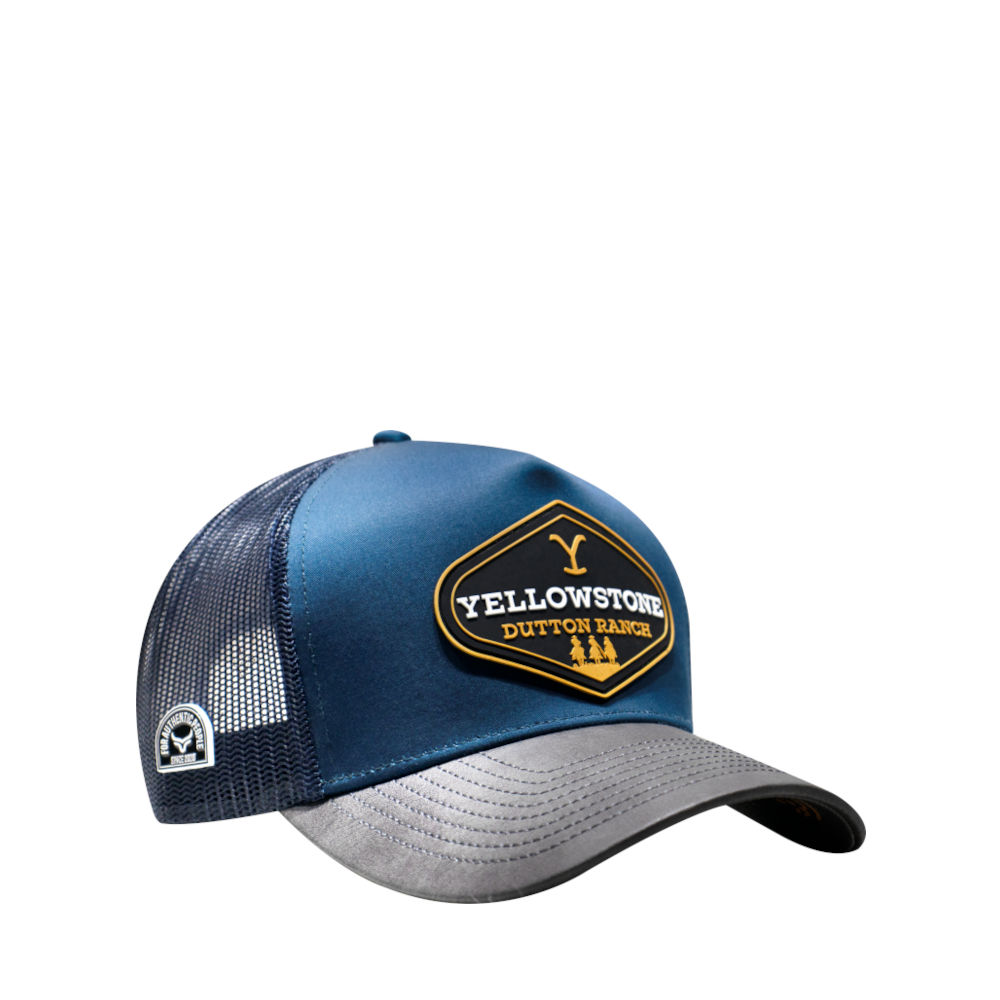Gorra Ranch & Corral Yellowstone 39 en color azul obscuro y visera gris.