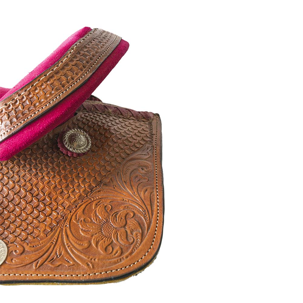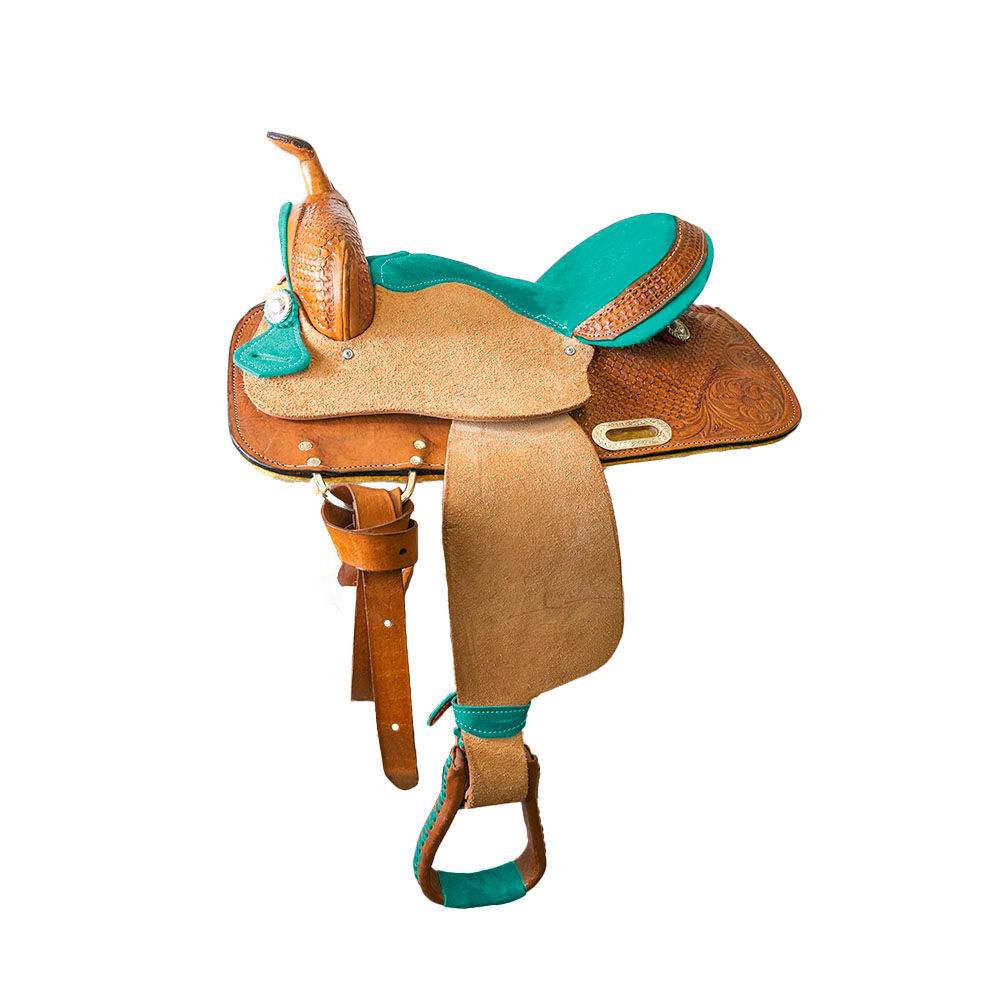 Montura barrilera de bastos cuadrados con fuste 13′. Disponible en color Aqua, Rosa y Morado. No incluye accesorios.
