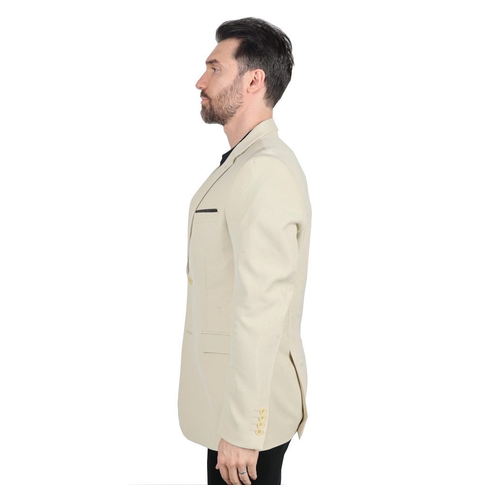 Realza tu atuendo de noche con nuestro saco elástico de corte moderno para hombre, diseñado meticulosamente para ofrecer sofisticación y versatilidad. Este elegante saco cuenta con dos bolsillos falsos en la cadera y un bolsillo en el pecho adornado con un pañuelo de bolsillo fijo en contraste, que le añade un toque distintivo. El forro interior presenta el mismo diseño que el pañuelo, aportando cohesión al conjunto. Además, incluye un bolsillo interior, perfecto para guardar objetos pequeños o documentos personales. Con su cierre de dos botones, puños de cuatro botones y líneas sutiles para un ajuste a medida, este saco irradia elegancia refinada y encanto moderno.