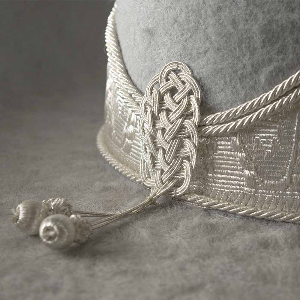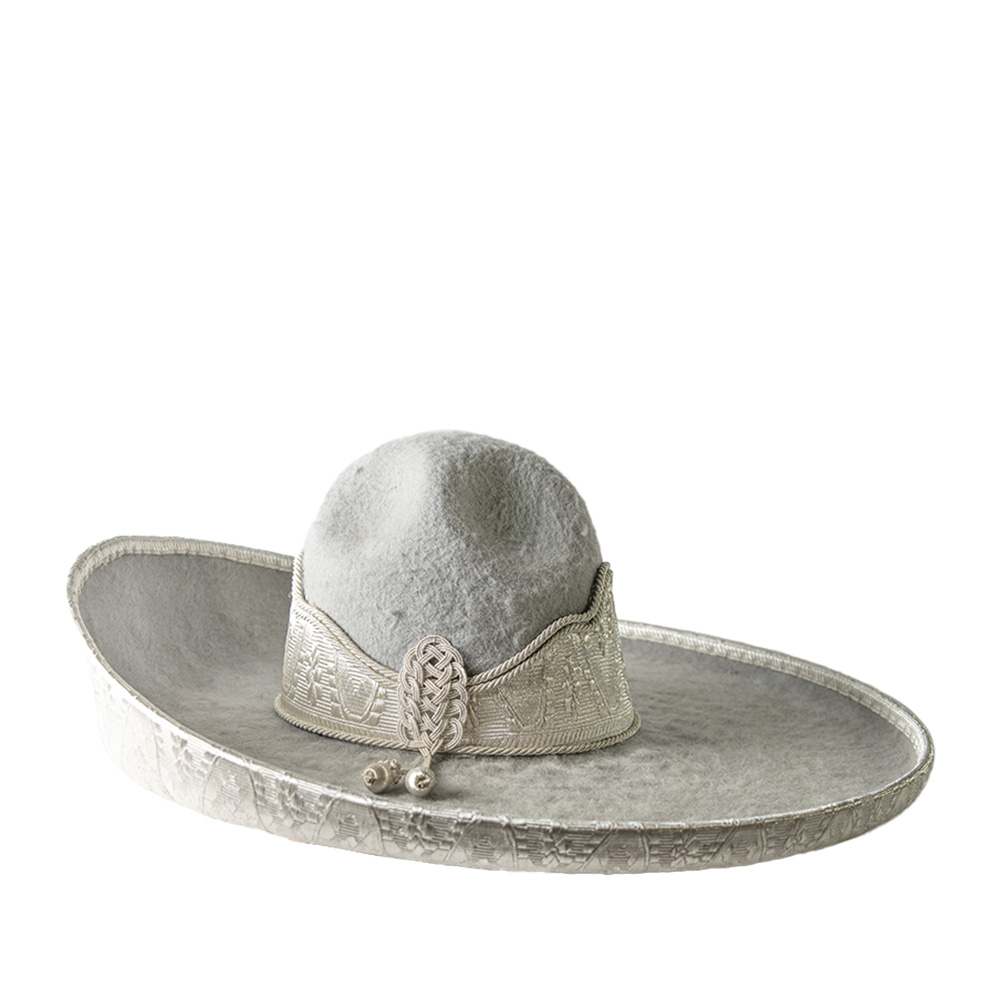 Sombrero charro de lana con toquilla y ribete, con doble carpeta calada y ribete bordado.
