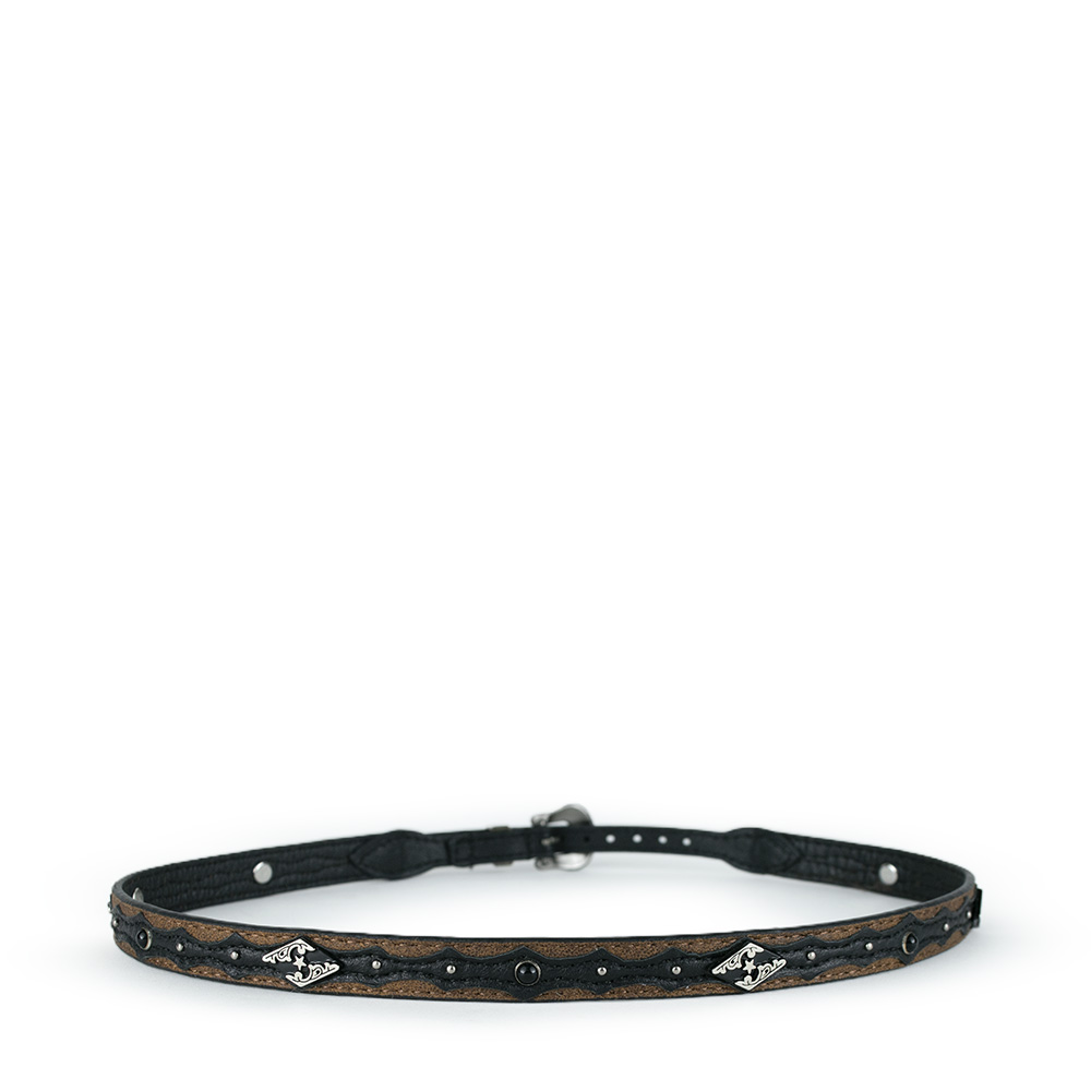Toquilla que combina la tradición artesanal con un diseño contemporáneo. Fabricada en piel con diseños metálicos en una combinación de tonos negros y marrones, esta toquilla es el accesorio perfecto.