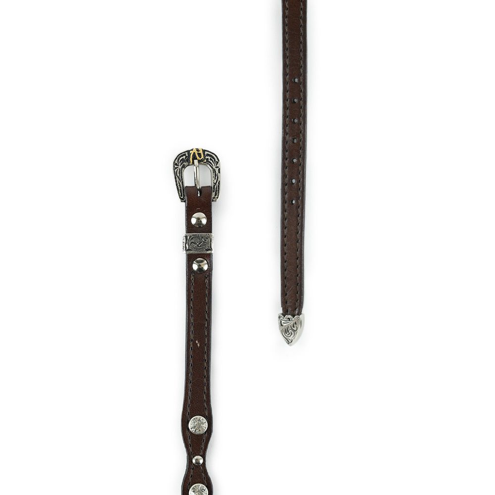 Toquilla con diseño grabado en patrón cincelado a lo largo de toda la correa, evocando la rica tradición del repujado en cuero y ofreciendo una textura visual y táctil inigualable, con detalles tradicionales en metal envejecido.